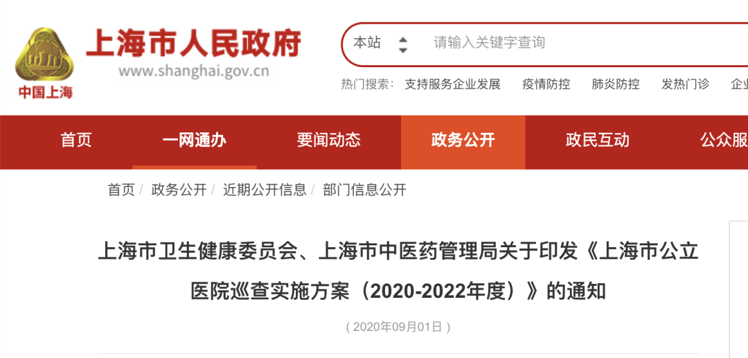 9月1日,上海市人民政府發(fā)布《上海市公立醫(yī)院巡查實(shí)施方案(2020-2022年度)》。